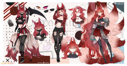 BASE PRICE includes full front & back view, color palette, 3-5 close-ups/props, 1 rendered head shot, 1 rendered half shot and optional text. BACKGROUND is simplistic, with typically minor patterning & colors to match rest of sheet.Any text added onto the sheet must be provided by commissioner.inquire me for add-ons, or complexity fees.